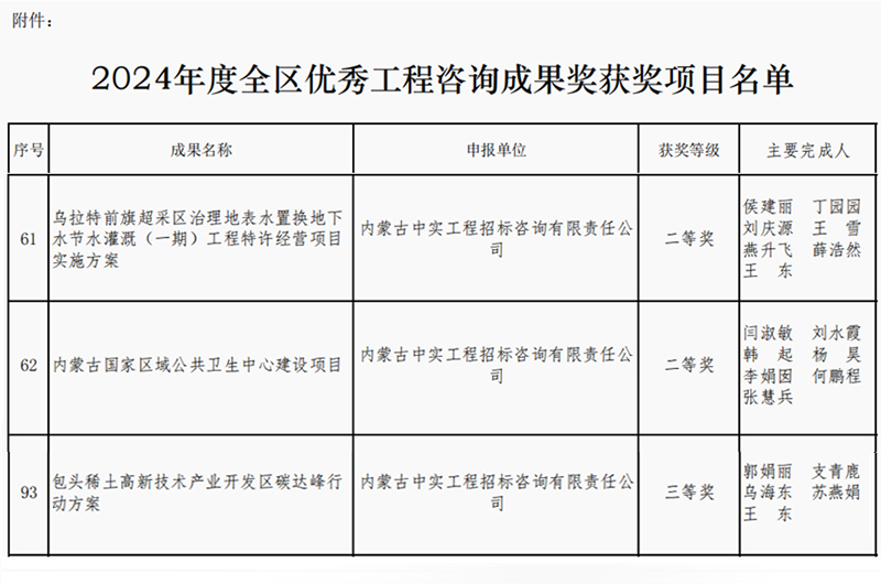2025-04-167823 次2025年4月16日,内蒙古工程咨询协会公布了2024年度优秀咨询成果奖获奖单位名单,我司取得两个二等奖和一个三等奖,我司专业能力和服务质量再次获得行业的认可。此次获奖,不仅体…